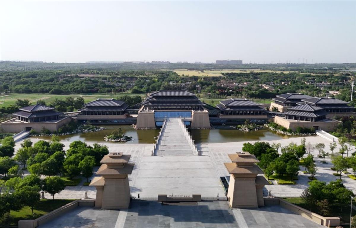 记者了解到,秦汉馆主馆区七座建筑如北斗七星布局,彼此以廊道相连,从空中俯瞰,古老遗址与现代场馆交相辉映,引人注目。