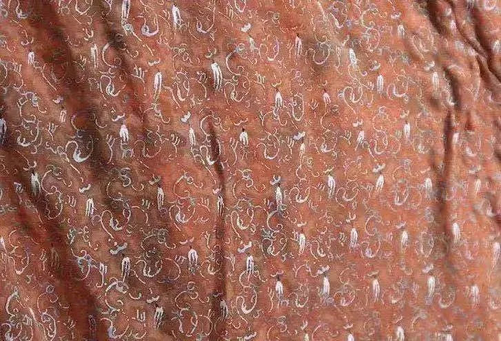 这是湖南博物院院藏印花敷彩纱丝绵袍局部(原文物)。(受访者供图)