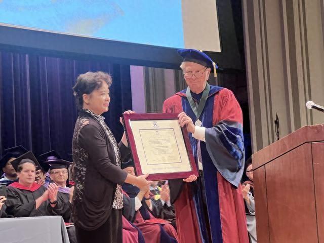 毕业典礼现场,林徽因外孙女于葵代表林徽因,从韦茨曼设计学院院长弗里茨·斯坦纳手中,接过了这份迟到近百年的学位证书。