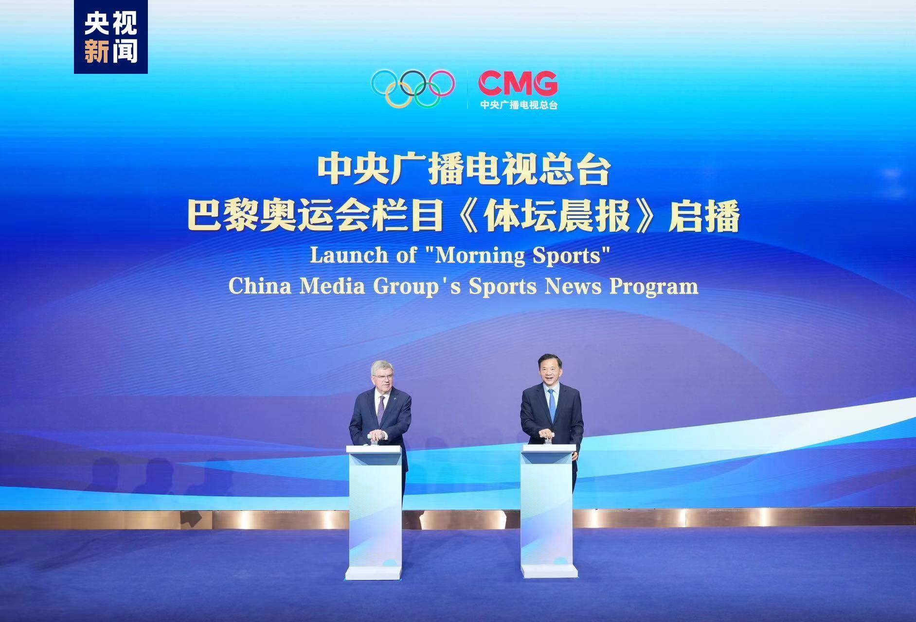 △巴赫与慎海雄共同发布中央广播电视总台巴黎奥运会报道标识