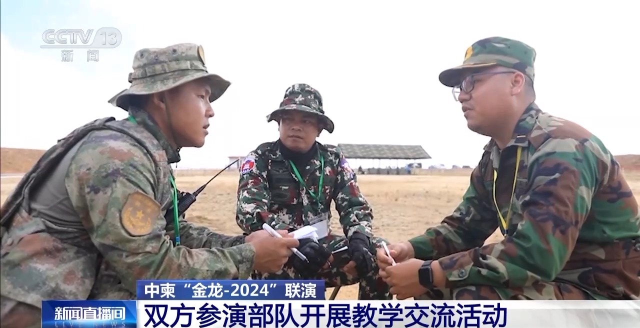 目前中柬“金龙-2024”联演进入适应性训练阶段,陆上方向的参演部队开展了教学同训、研讨交流等活动,双方参演官兵在相互学习,取长补短中进一步加深了解,增进互信。