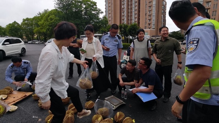 市民们纷纷购买榴莲。照片均由宁海县公安局 提供