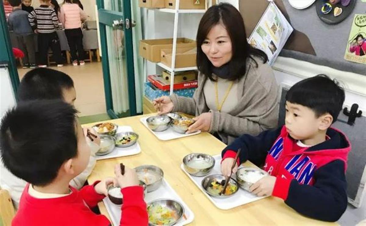陪餐制在杭州主城区的公办幼儿园也属于标配。幼儿年龄小,进餐能力有限,伙食应该更加精细。幼儿和老师之间每日需要摄入的营养也有不小差别,老师和学生的配餐是不一样的,但是幼儿吃饭的时候,老师会一直陪在身边,指导他们去吃饭。
