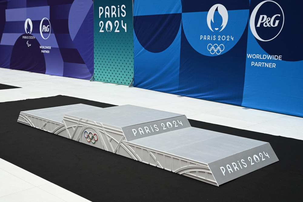 这是5月23日拍摄的巴黎奥运会领奖台。新华社发(朱利安·马蒂亚摄)