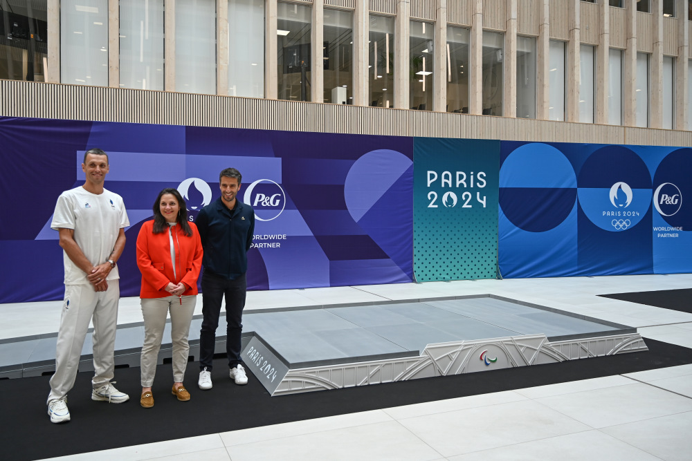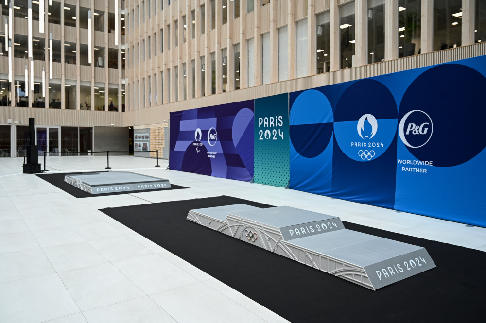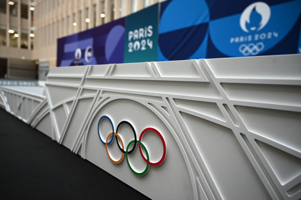 当日,巴黎奥运会和残奥会的领奖台设计在位于法国巴黎近郊圣但尼的巴黎奥组委总部揭晓。本届奥运会的领奖台设计以埃菲尔铁塔的金属网格结构为灵感,主体颜色为简约大气的灰色与白色,采用木材和100%再生塑料,并且通过模块化的设计,以适应不同比赛的需求。