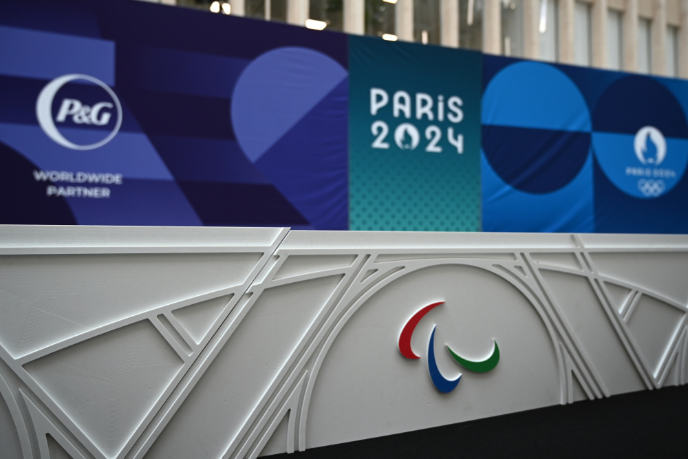 这是5月23日拍摄的巴黎残奥会领奖台设计细节。新华社发(朱利安·马蒂亚摄)