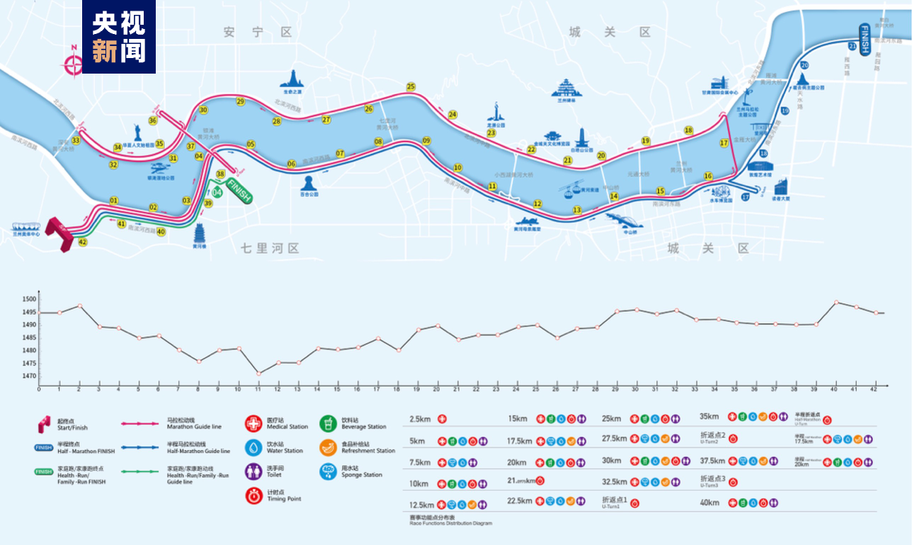 兰州城区被一条黄河一分为二,整个城区在黄河两岸沿东西向狭长分布。这样的城市布局为兰马提供了天然的“黄河风情赛道”。跑者们不仅可以奔跑在黄河岸边,还能一路欣赏到黄河楼、中山桥、黄河索道等多处沿线景观。