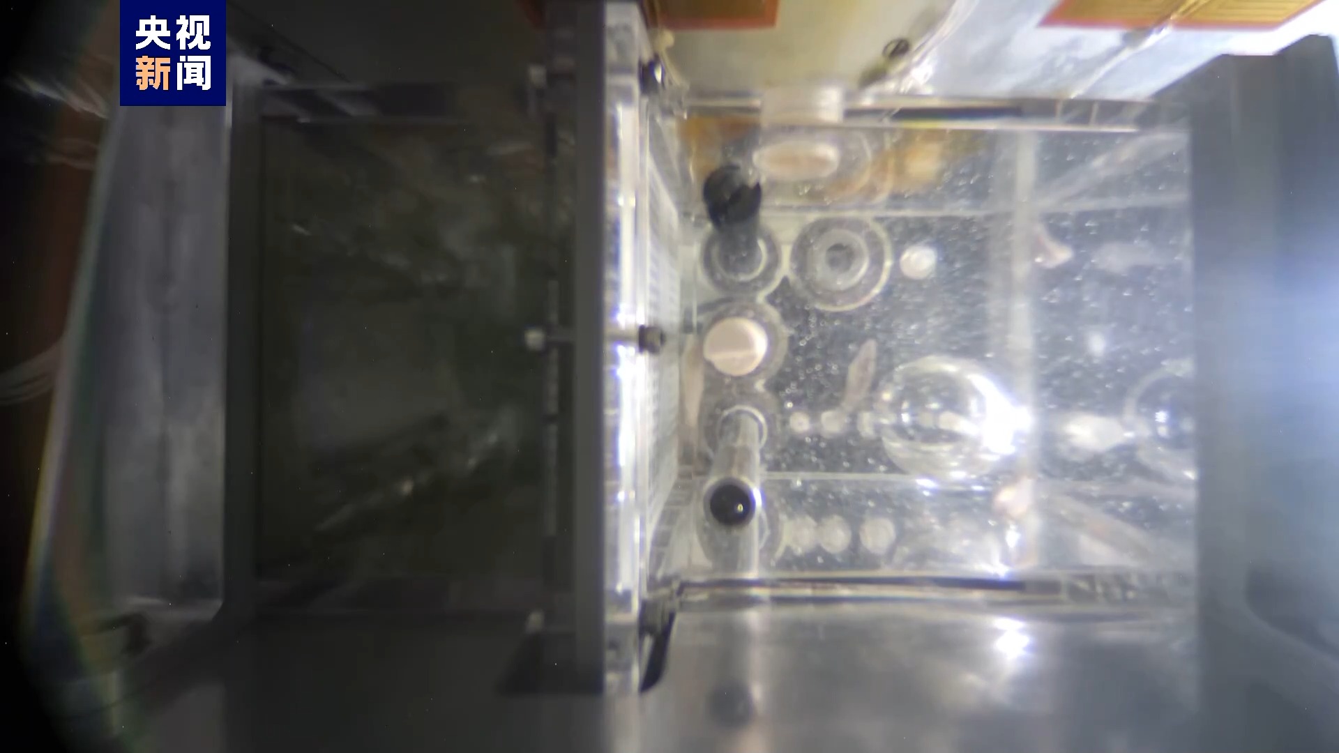 当前,中国空间站内各项空间科学实(试)验正在稳步推进。利用生命生态实验柜开展的,空间先进水生生保系统关键技术研究实验项目进展顺利。载有4条斑马鱼和金鱼藻的实验组件,随神舟十八号飞船进入空间站后,进行了在轨实验,目前,神舟十八号乘组已成功开展两次水样样品采集和一次鱼食盒更换操作,发现斑马鱼在微重力下表现出腹背颠倒游泳、旋转运动、转圈等定向行为异常现象。