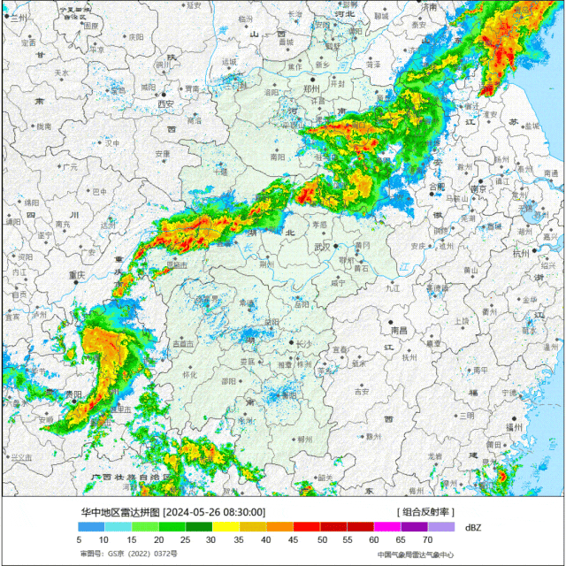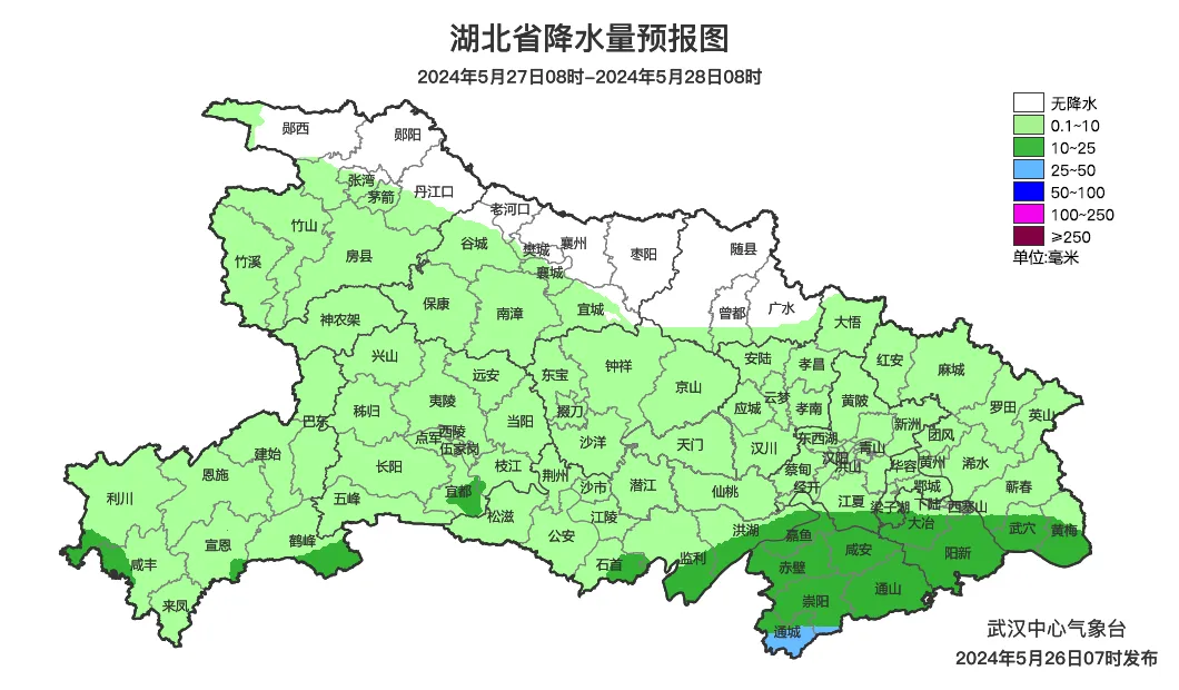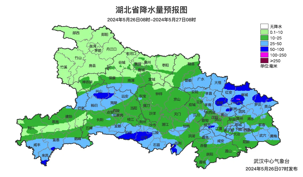 预报来源:武汉中心气象台2024年5月26日08时预报