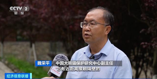 中国大熊猫保护研究中心副主任 魏荣平:通过交流窗可以互相看到、嗅闻到,这样它能近距离接触隔壁的熊猫。减少应激后可以让它建立自信心,更好地融入大熊猫种群。