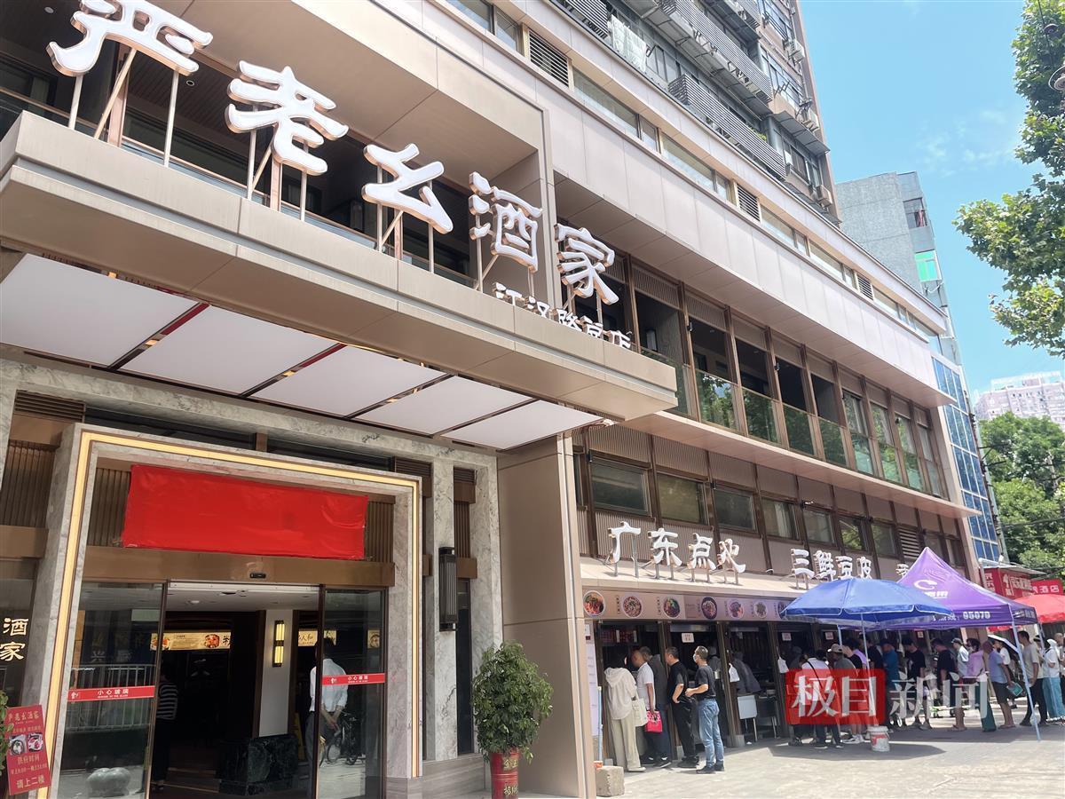 5月29日11时许,在位于武汉江汉路的严老幺酒家门口,可以看到广式烧腊、广东点心、重油烧麦、三鲜豆皮、鲜肉汤包、粉面等档口。其中,三鲜豆皮档口前大排长龙,队伍绵延十几米。