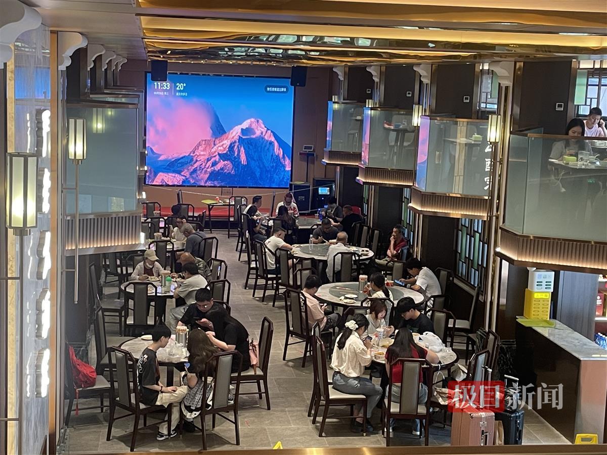 走进酒楼,不少市民端着豆皮和烧麦在一楼大厅过早;二楼卡座上,不少食客正在消费粤式早茶;三楼和四楼则是包间,主营湖北本帮菜;到了晚上,食客可以在此消费粤式晚茶,营业时间至午夜12时。这意味着,在同一家餐厅,可以“包圆”市民的一日三餐。