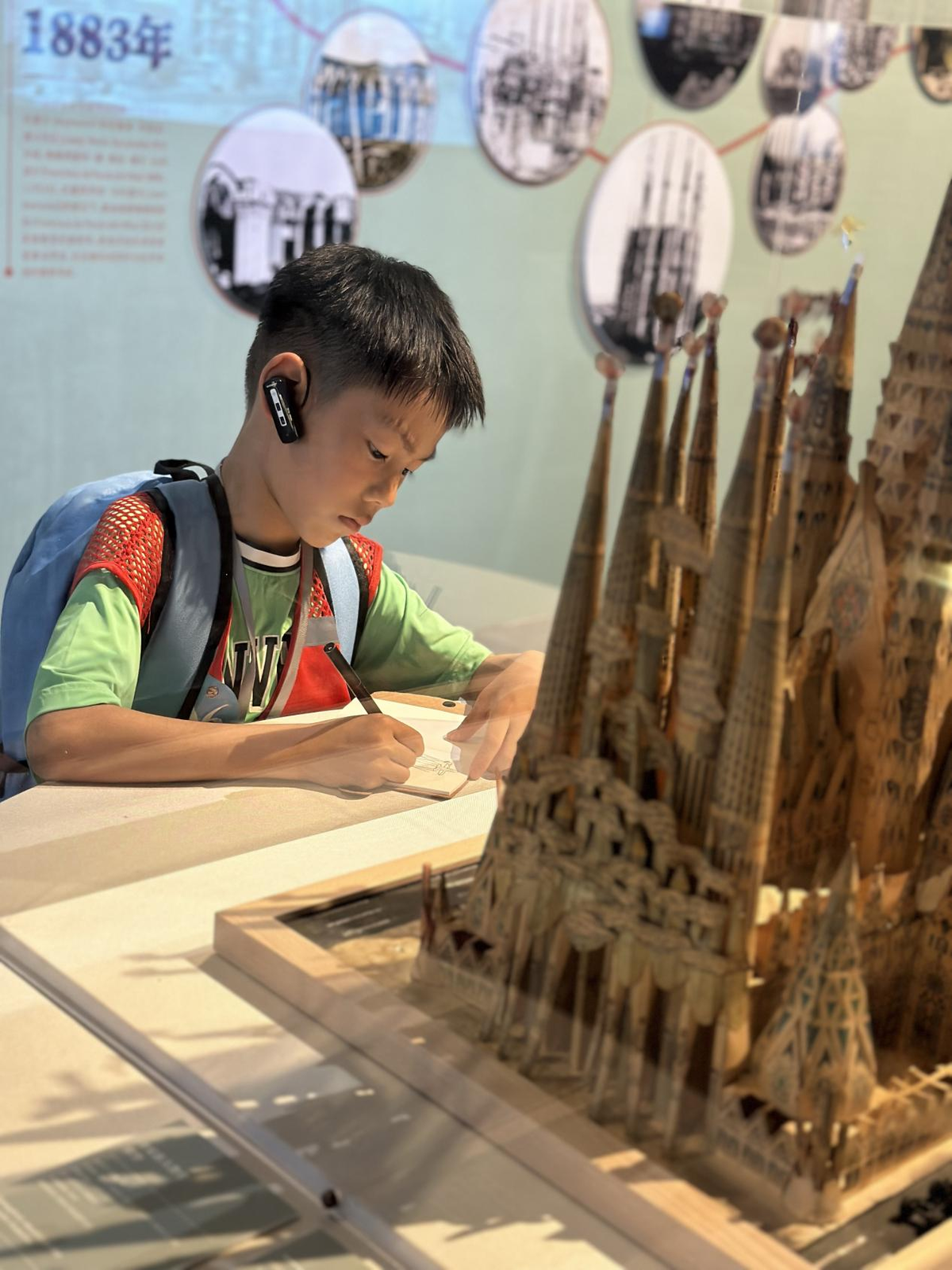 进入科技馆后,我们参观的第一站是世界建筑大师高迪的“高迪:瞬时即永恒”中国首展,近距离接触了几百组文物和展品。高迪通过建筑作品塑造了一座城市——巴塞罗那的灵魂,深刻影响了这座城市的文化,也让我体会到了建筑的魅力如此之大。