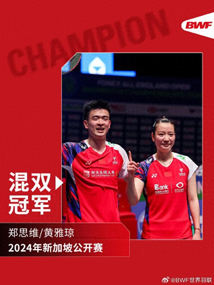 2024新加坡羽毛球公开赛:郑思维/黄雅琼夺得混双冠军