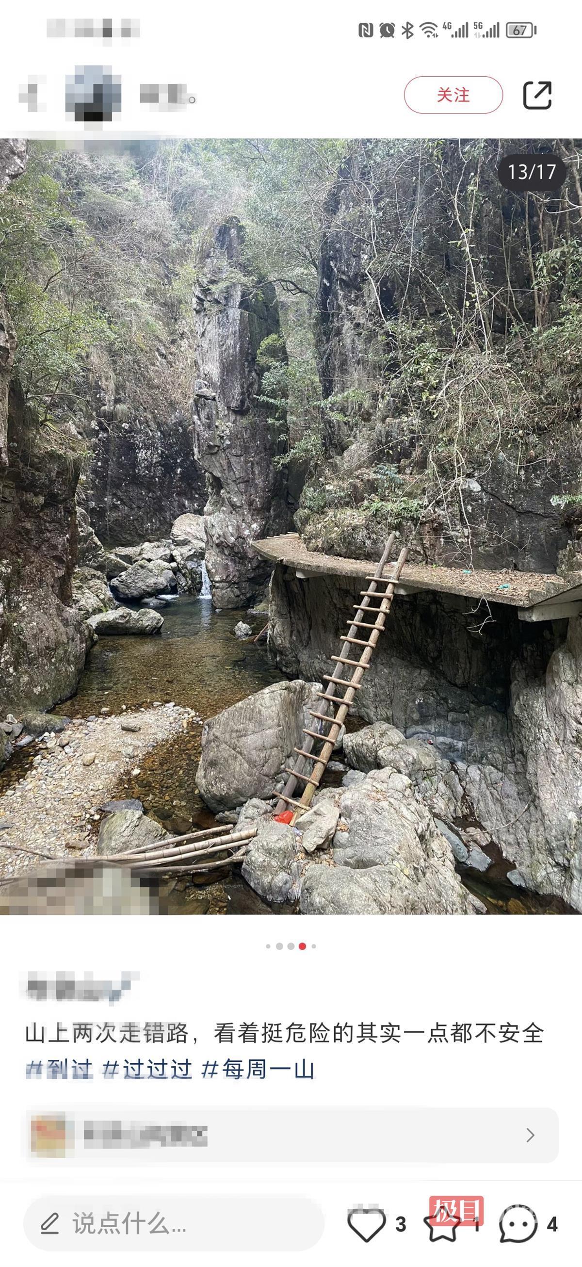6月3日上午,极目新闻记者在小红书、携程旅行等APP检索“台州石人峡”“石人峡徒步”“台州徒步”等关键词发现,有不少网友曾发帖文推荐台州石人峡的徒步线路,还有网友将徒步线路做成地图,石人峡成为驴友徒步的网红打卡点。