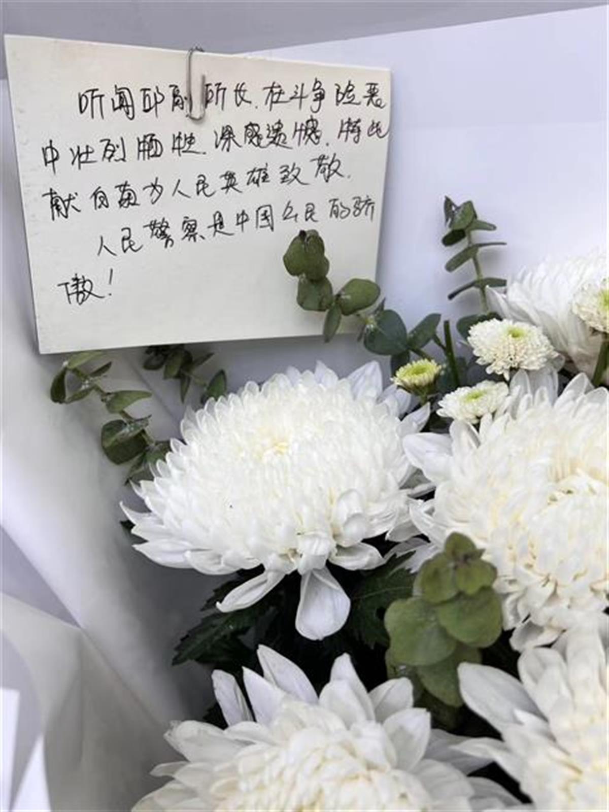 “邱所长,您一路走好!”6月4日上午10时许,市民万先生含泪走进汉兴街派出所,把手中的花篮轻轻摆放在接待大厅。
