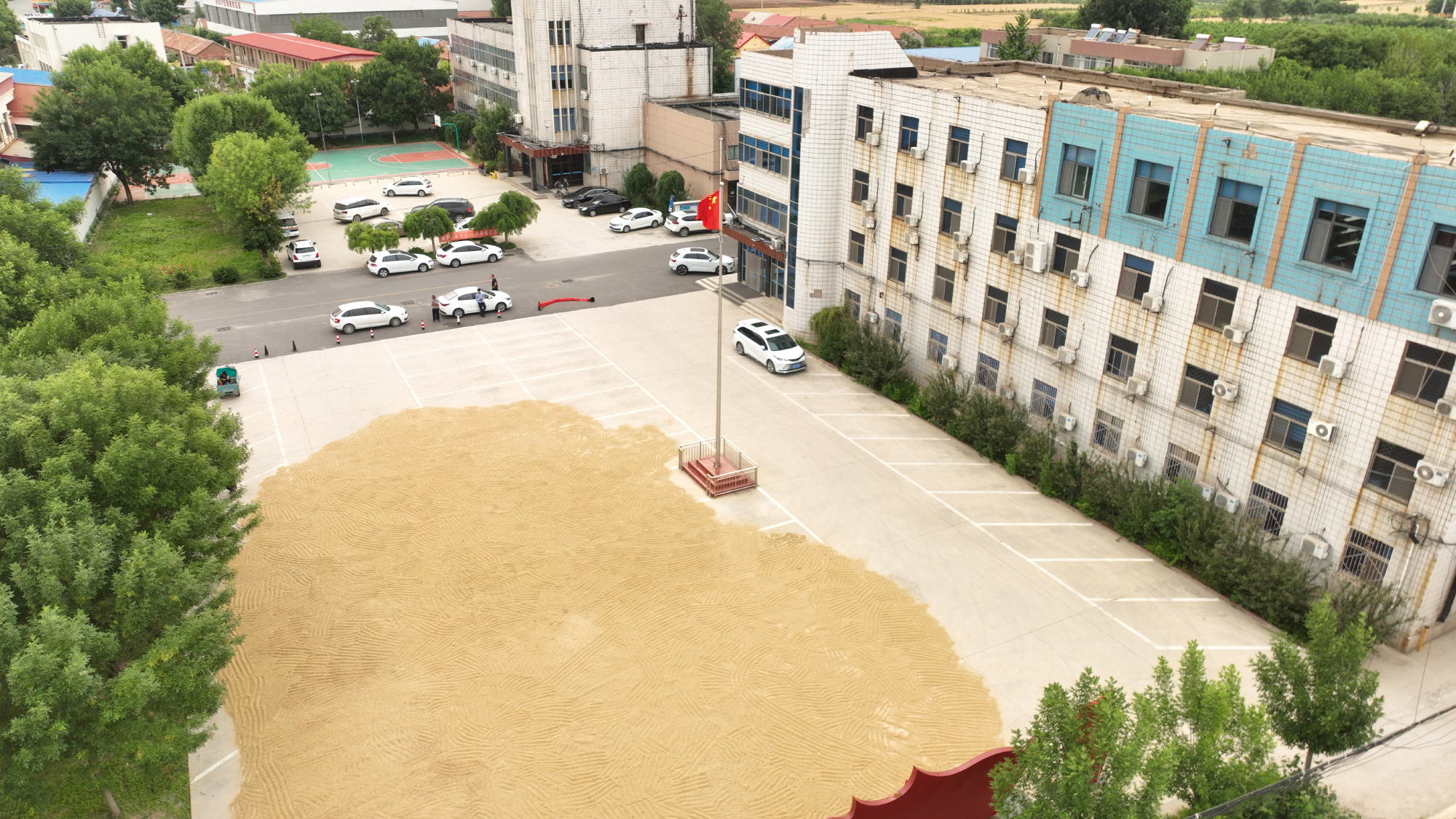 2024年6月4日,山东滨州,阳信县金阳街道办事处办公楼前停车场铺满金色的小麦。
