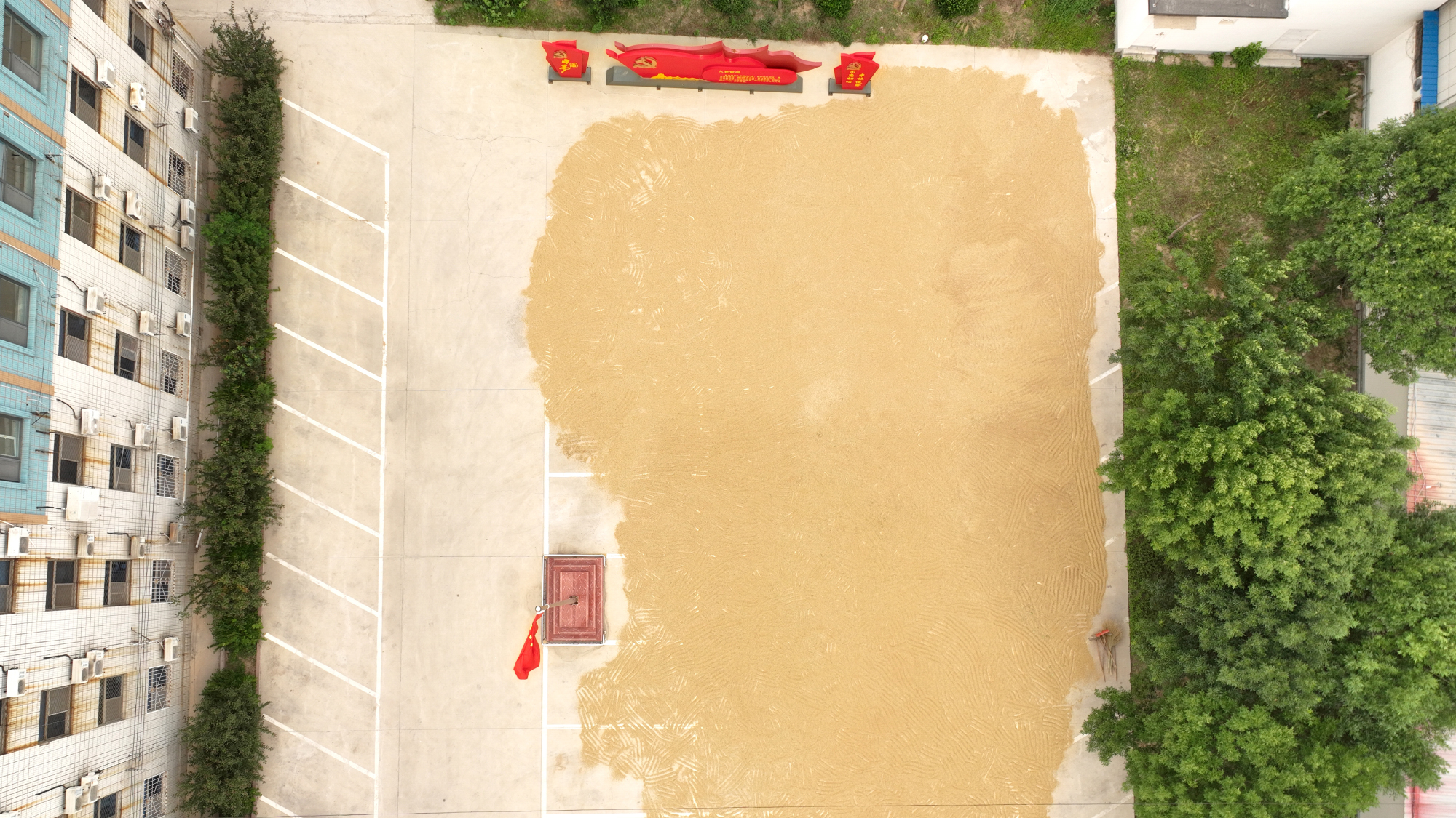 2024年6月4日,山东滨州,阳信县金阳街道办事处开放办公楼前的停车场,供农民晒粮使用。