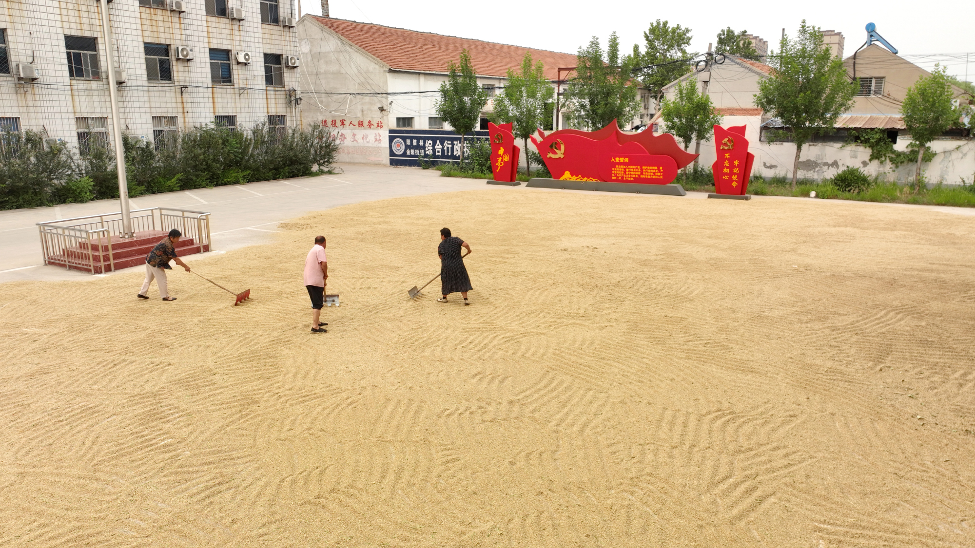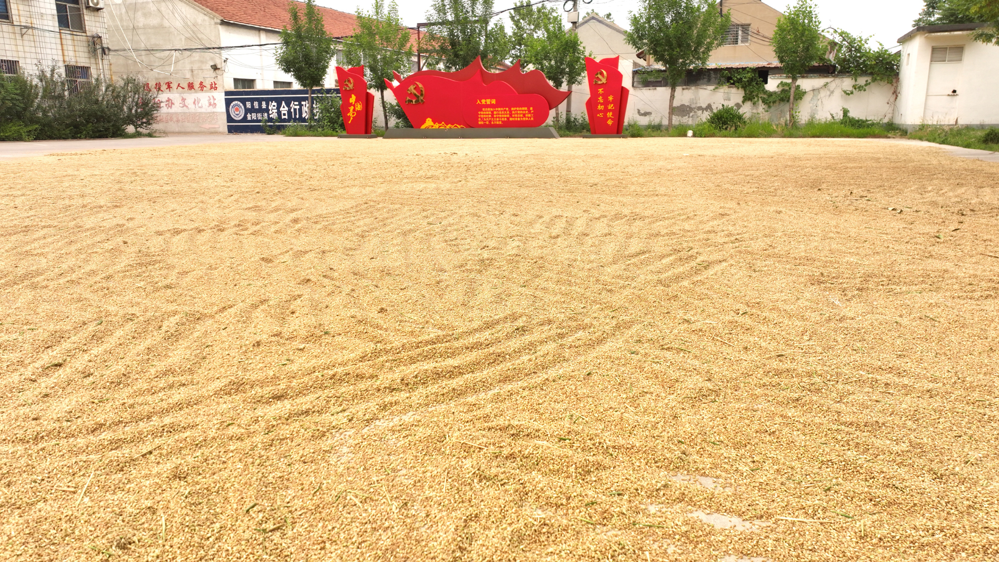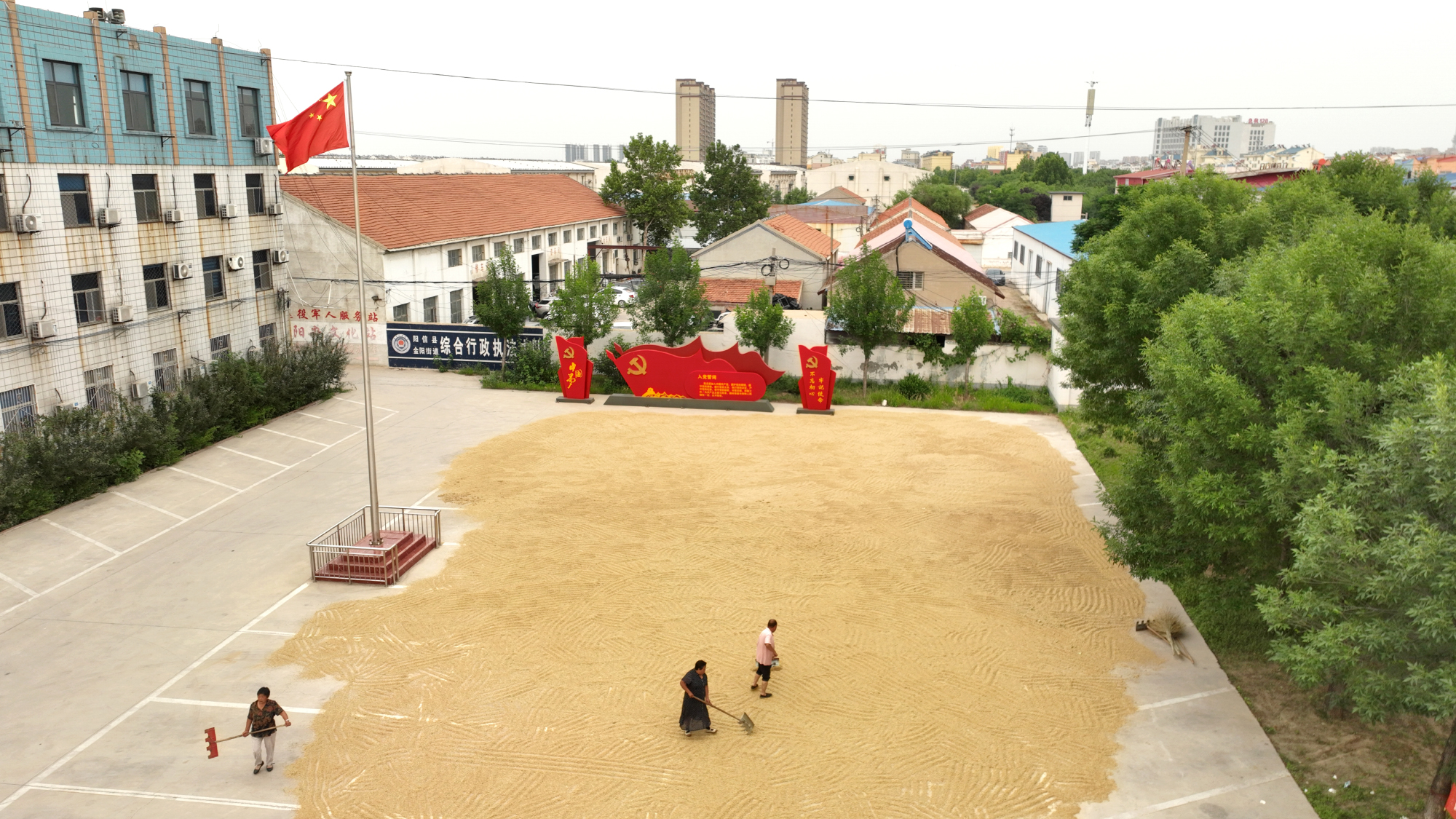 为方便群众晾晒小麦,山东滨州阳信县金阳街道办事处今年再次开放办公楼广场等公共区域,供农民晒粮所用,确保今年夏粮颗粒归仓。