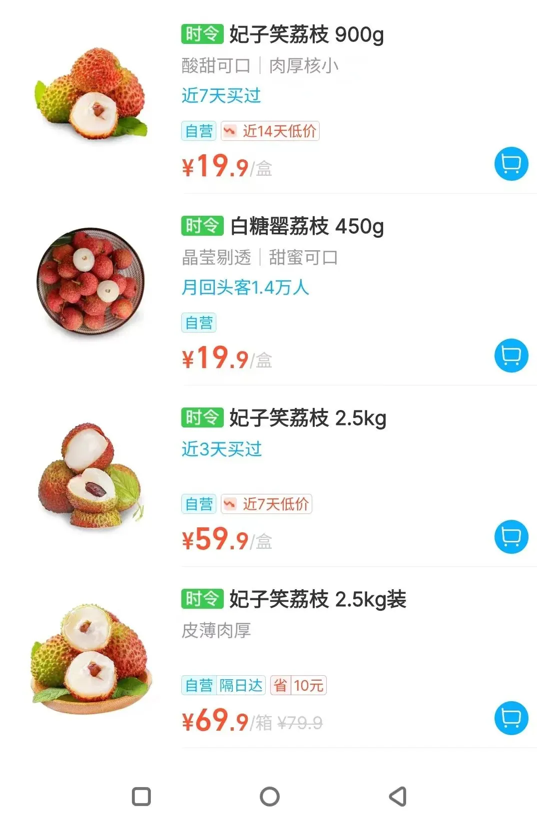 上海地区生鲜平台近日的荔枝价格如何?