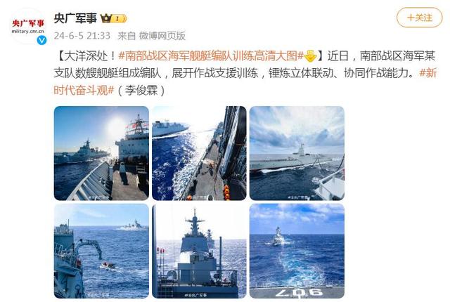 【大洋深处!南部战区海军舰艇编队训练高清大图】近日,南部战区海军某支队数艘舰艇组成编队,展开作战支援训练,锤炼立体联动、协同作战能力。(李俊霖)