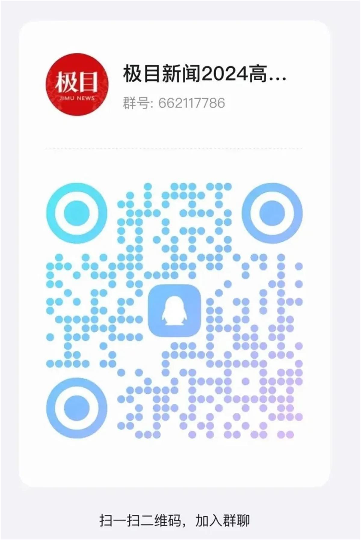 快来加入“极目新闻2024高三家长群”(QQ群号:662117786),我们将在群内及时发布关于高考的权威信息、鲜活新闻、服务资讯内容,欢迎广大考生家长加入。