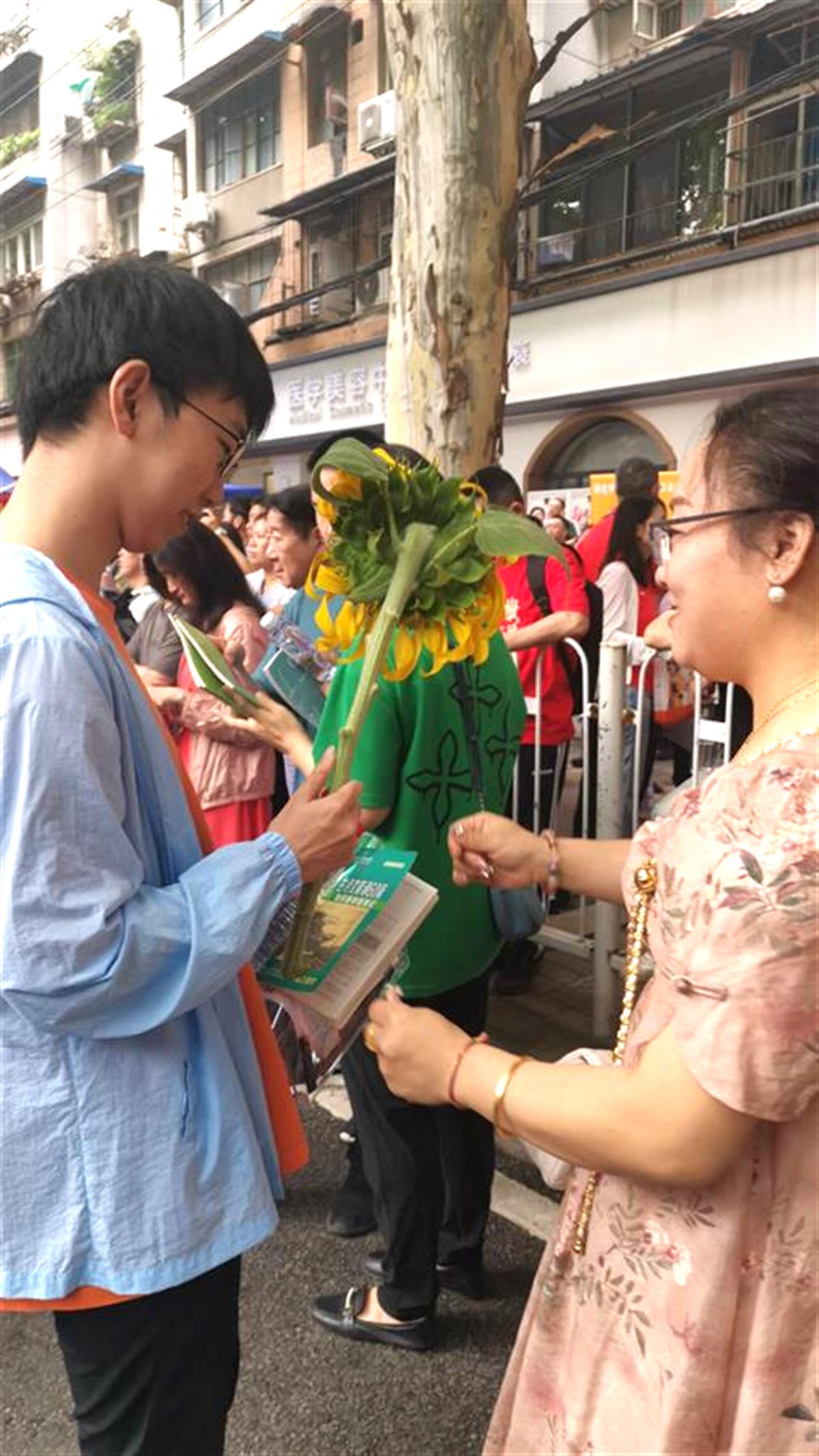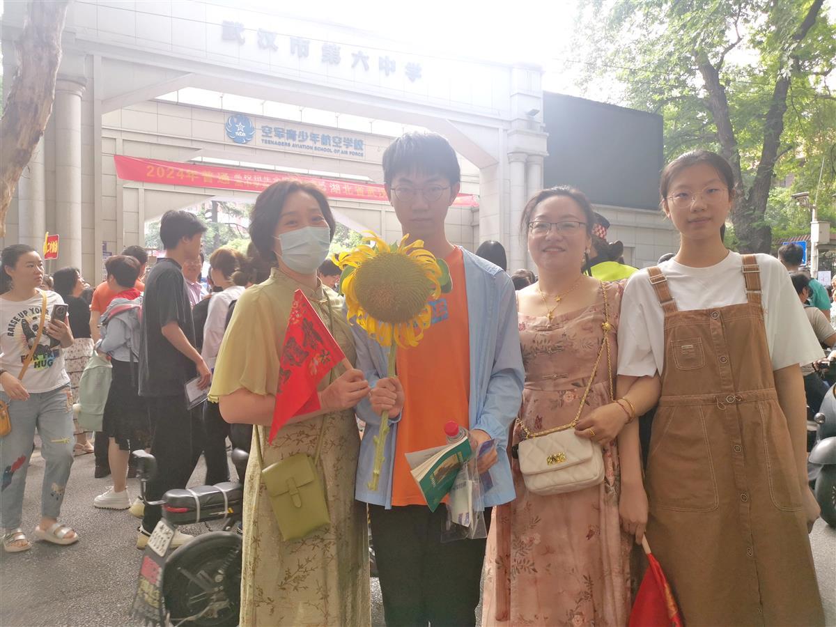 7日早上,帅女士专门请假调班,拿着做好保湿的向日葵,和在读高一的表妹一起早早来到考点外守候。“两个表弟都是武汉六中的学生,其中胡乘翔在本校参考,另一个表弟读的是飞行班,安排到了别的考点,我下午再去给他送向日葵。”帅女士说。