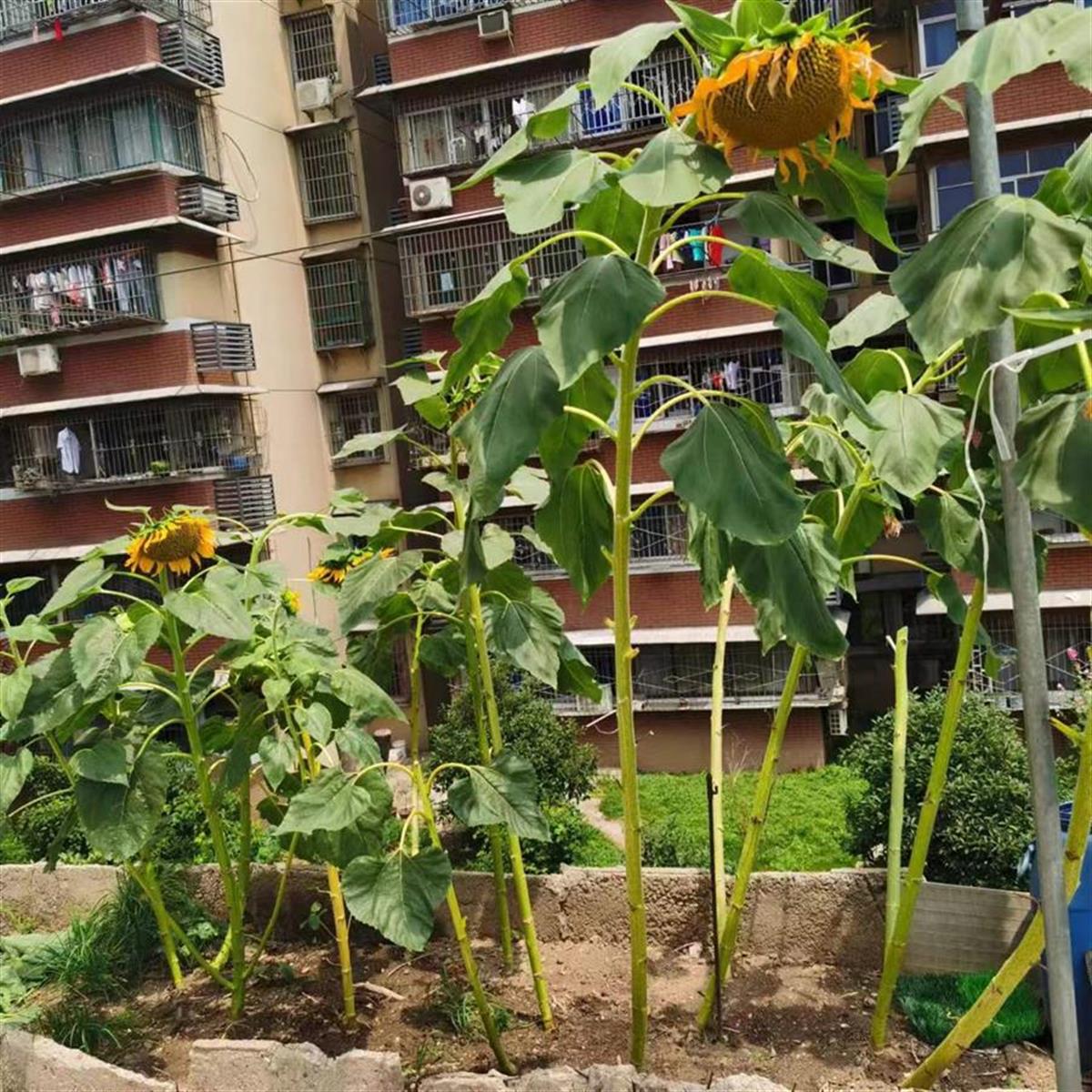 帅女士家里有一个露台,她算好时间,提前一个多月开始,将原本用来种花的地方都种上了向日葵,有观赏型也有食用型。昨天,她最终选择用更“显眼”的食用型向日葵,由自己读小学的儿子剪下两枝。