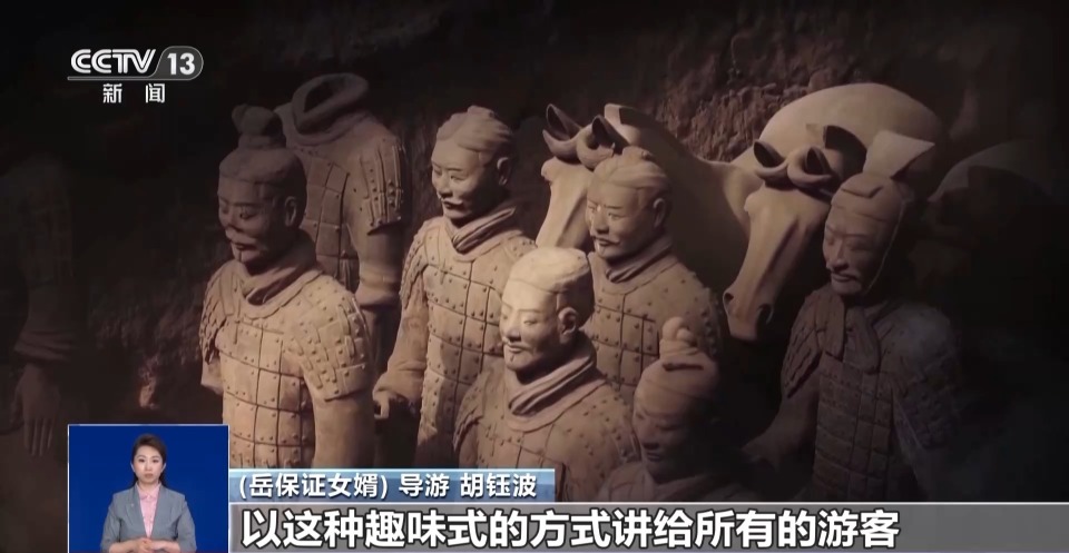 (岳保证女婿)导游 胡钰波:他的发音,陕味英语,也是我们陕西省的一个文化自信。它(秦始皇兵马俑博物馆)里面承载了陕西省、全中国包括中华文化里很大一部分东西,所以我们得把这些东西以这种趣味式的方式讲给所有的游客。