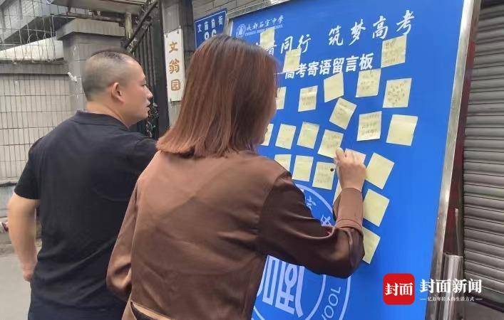 “人生新篇章即将盛大开启,高考加油!”“祝全体高三学子金榜题名,前程似锦!”“大鹏一日同风起,扶摇直上九万里。”“祝学姐、学长们高考顺利,一帆风顺!”……在成都石室中学(文庙校区)考点外,一块高考寄语留言板上,便利贴上写满了祝福,传递暖暖爱意。一位志愿者告诉记者,此块留言板由石室中学设置摆放,“想要为考生、家长提供了一个表达情感、释放压力的平台,感觉很有意义,不仅能激发考生们的斗志和信心,也可以让家长和孩子们留下一个美好的回忆。”