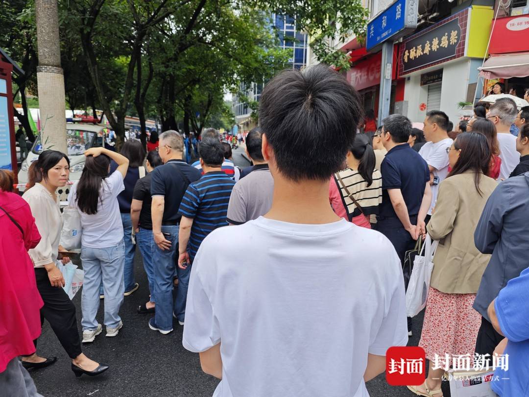 早上8点过,四川大学附属中学考点前聚集了家长和考生。“等下妈妈,我再看一遍。”一位考生在门口快速浏览着复习资料,父母在旁边静静地陪伴,不忍打扰。在“送考大军”中,成都棠湖中学的高三学生小何起了个大早,专程为姐姐送考。“一来是为姐姐加油打气,希望她轻松应考、妙笔生花,另外自己也想提前感受下高考氛围。”小何说,希望在这个6月成为姐姐高考期间的精神支柱,让她感受到后面有人,底气十足。