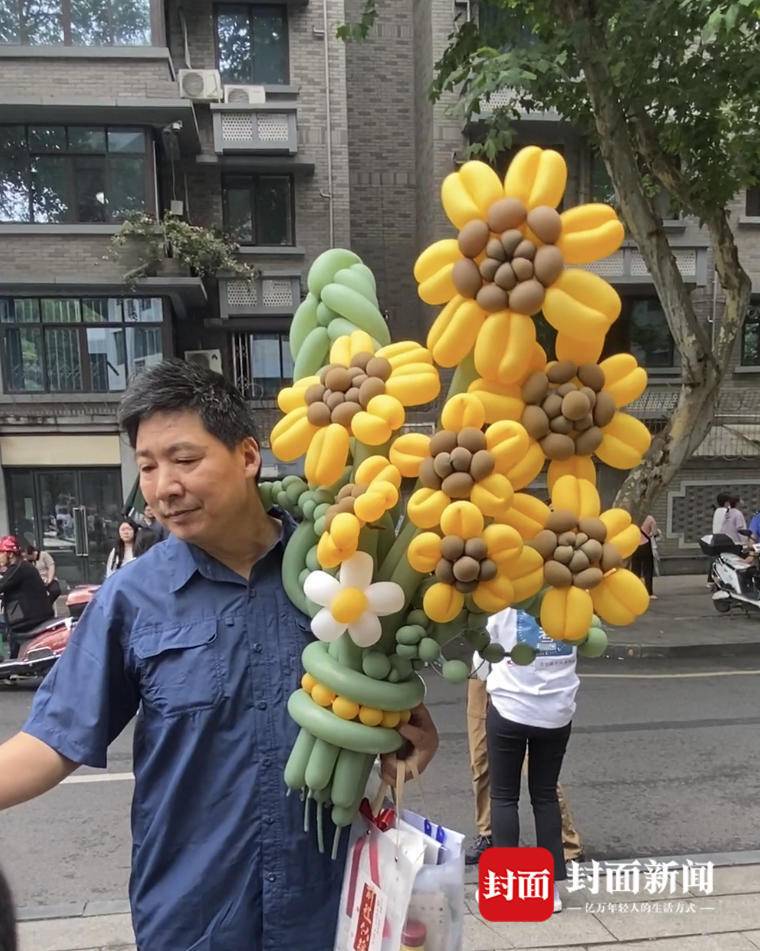 在上午语文科目考试后,走出考点校门的许同学就收到了一份大大的惊喜,家人为她递上了一束气球制作的向日葵,在人群中格外地突出,“非常开心,也非常感动,这是家人对我的祝福。”许同学表示,没想到第一场考试结束,就收到了这么一束特别的花,“这是家人对我的祝福,我也会好好准备接下来的考试,一定拿一个好成绩。”