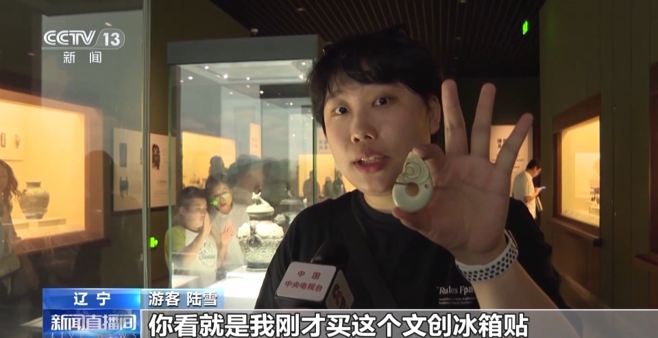游客 陆雪:你看我刚才买这个文创冰箱贴,特别好看。5000多年前咱们中国就可以做出这么好看的玉了,真是太厉害了。咱们国家有这么源远流长的历史,我作为一个中国人非常骄傲。