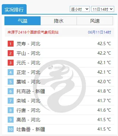 6月8日,河北出现大范围高温天气,高温过程持续时间长,影响范围广,极端性强。气象监测显示:11日白天,河北中南部大部分地区最高气温在37℃至40℃,部分地区达到41℃至42℃,极值点出现在元氏,为42.9℃,赞皇、正定等21个站点突破6月中旬极值。