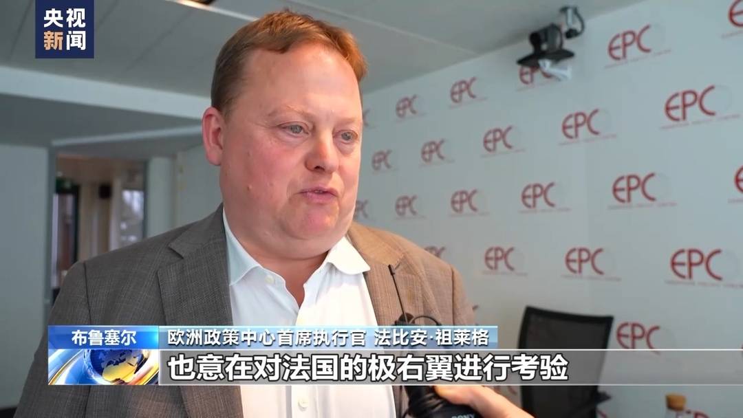 欧洲政策中心首席执行官 法比安·祖莱格:我认为他(马克龙)是在战术上着眼于下届法国总统大选。他认为现在举行议会选举更为有利,希望在国家层面的选举中,极右翼不会像在欧洲议会选举中那样获得如此多的席位,也意在对法国的极右翼进行考验,让他们在困难的情况下参与执政,并希望选民在下次总统选举前,能改变他们的看法,但这仍是一场赌博。
