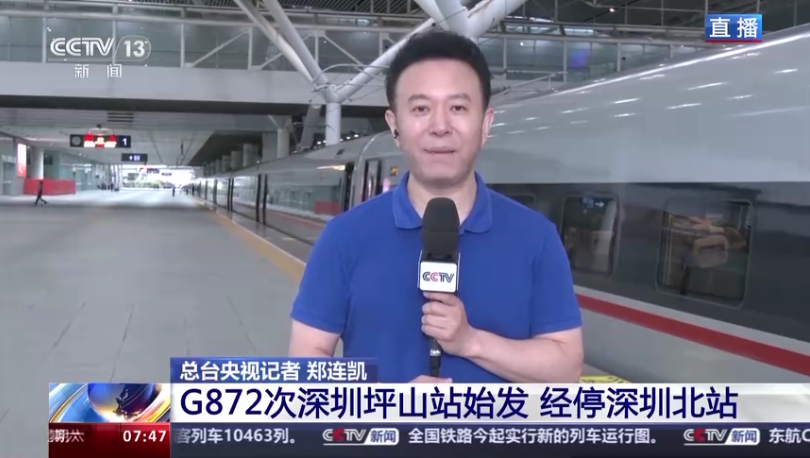 今天,粤港澳大湾区首趟途经京广高铁武广段,以时速350公里运行的G872次列车从深圳坪山站出发。作为今天调图的一大亮点,京广高铁武广段时速350公里运行的这趟列车有哪些特点,总台记者现场观察。