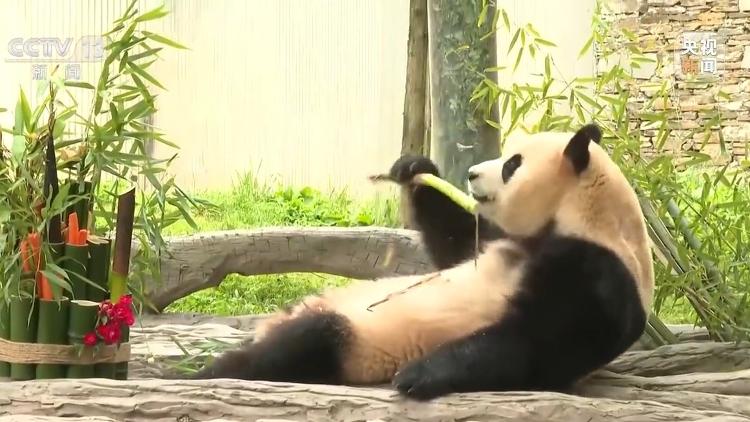 “福宝”饲养员徐翔:早晨来了之后我们给它加竹子,加好竹子吃一顿,自己到运动场溜达溜达,玩一玩,看一看,熟悉熟悉。下午想睡觉就睡觉,不睡觉就溜达,就是一种放松的、自由的感觉。回来到现在体重可能微微长了那么一点,长的不多,它体重保持还可以。