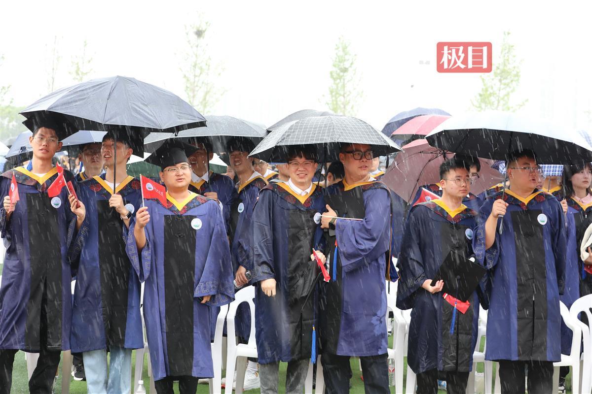 在雨中告别,让这场毕业典礼更显离别情深。长江大学经济管理学院毕业研究生王雁丽和父母孩子一同在现场观礼,她说:“今天带着家人一起来参加毕业典礼,感受喜悦和仪式感,感谢长大对我的培养,在这里学习到了非常多的知识,也希望未来能够运用到实践中去。”人文与新媒体学院本科毕业生谢方玲典礼结束后就将踏上旅程,她说:“不经历风雨,怎能见彩虹!这场毕业典礼令人终生难忘,我们会从容面对未来,大胆前行!”