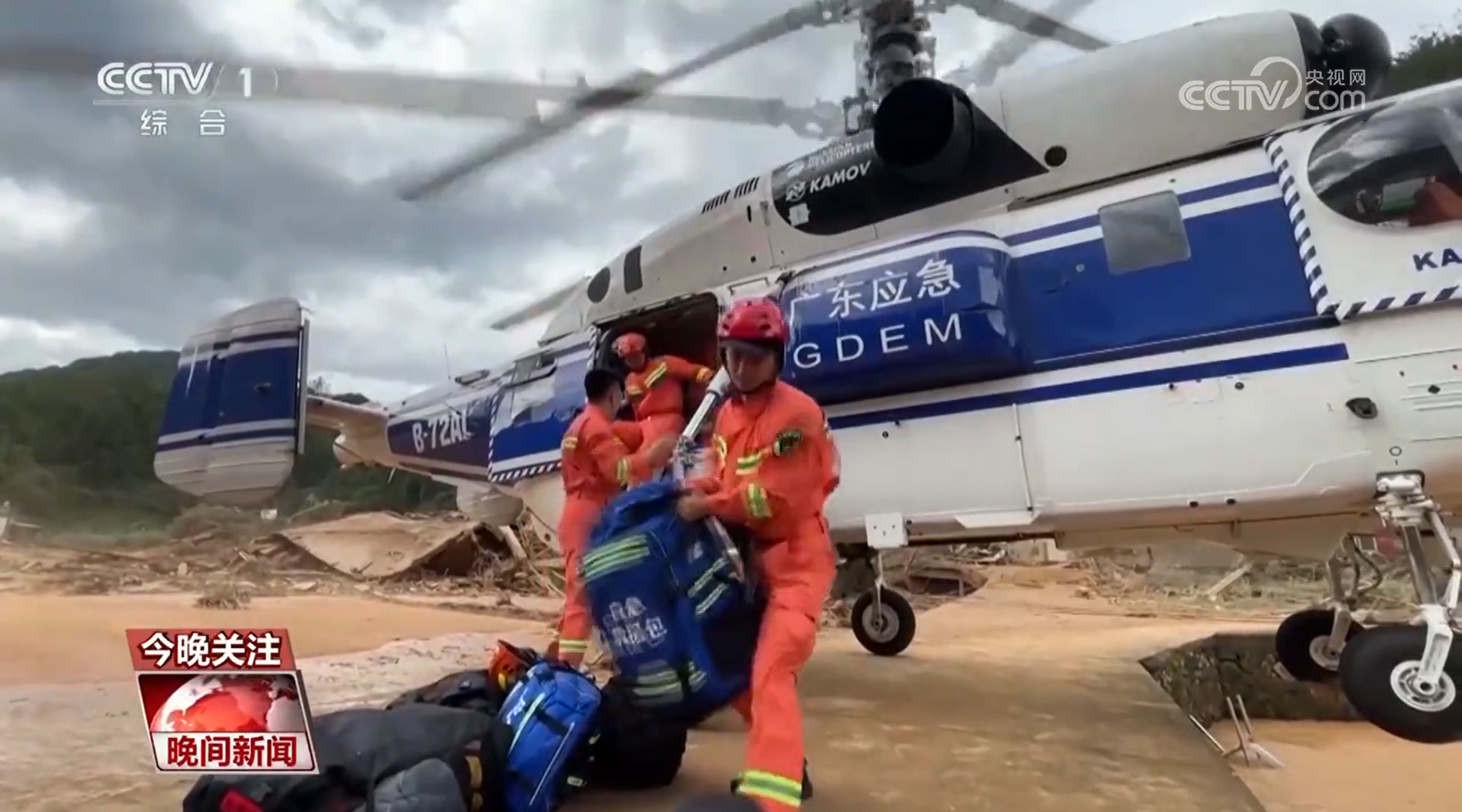 在受灾最为严重的大新村,当地紧急打通空中救援通道,保障物资供应。灾情发生后,梅州市平远县应急管理局副局长林申智与消防、医疗、通讯技术等9名成员组成的第一批救援小分队,第一时间通过航空救援直升机进入大新村,在不具备降落条件的情况下,超低空悬停跳落地面。