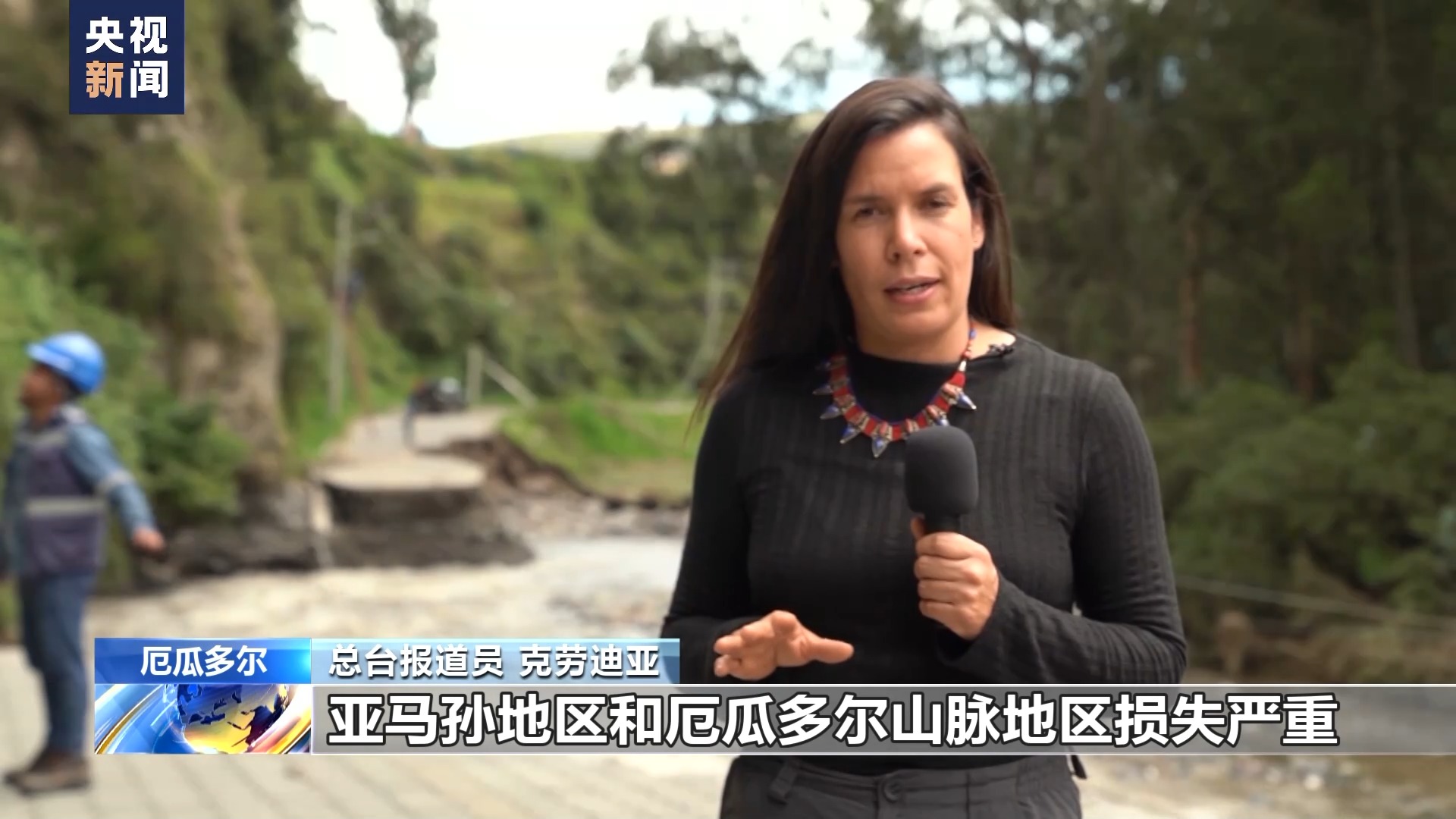 总台报道员 克劳迪亚:厄瓜多尔正在经历严重的气候危机,亚马孙地区和厄瓜多尔山脉地区损失严重,经济和旅游业遭受巨大损失。多条道路受到影响,还夺去了许多人的生命。