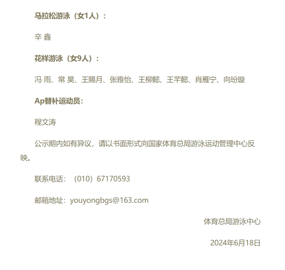 而中国游泳队的具体参赛名单由张雨霏、汪顺等奥运冠军领衔,覃海洋、潘展乐等名将也悉数入选。