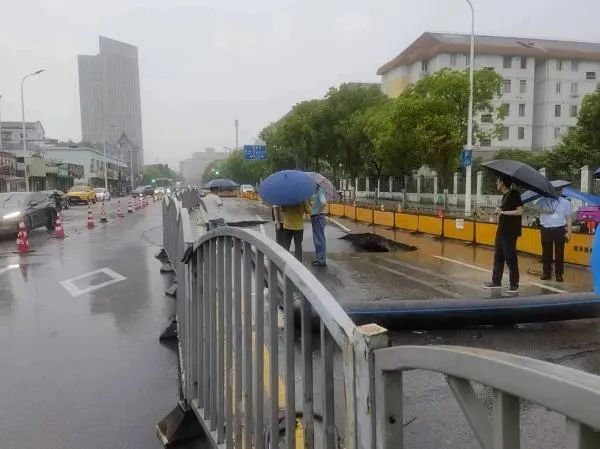 家住张杨北路附近的市民谢女士告诉记者,今天(6月21日)上午9时许,她出门时突然发现,家门口的路“塌了”。谢女士直言,之前,这段道路就曾处于维修状态。谢女士拍摄的照片显示,路面发生凹陷并坍塌,沉陷处存有大量积水,位于一旁的管道也出现了较大幅度的弯曲;记者从其他报料市民发来的照片上看到,现场有多位工作人员一边打着伞,一边研判情况。