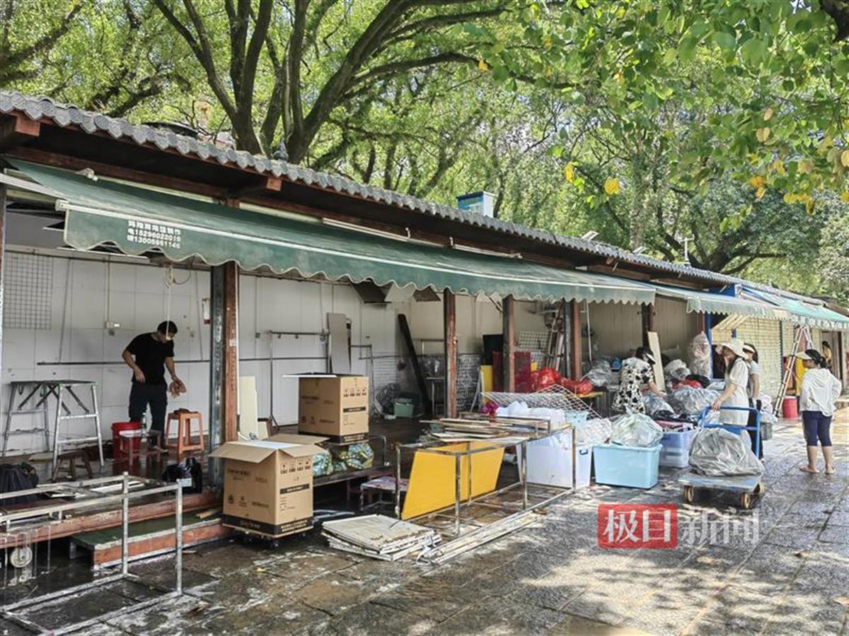 走进象鼻山景区,极目新闻记者看到,景区道路基本已经清洗干净,不过还有数十名清淤的工作人员依然在工作,江面上有工作人员站在船上打捞垃圾。景区内的商户们也开始忙着打理商铺。