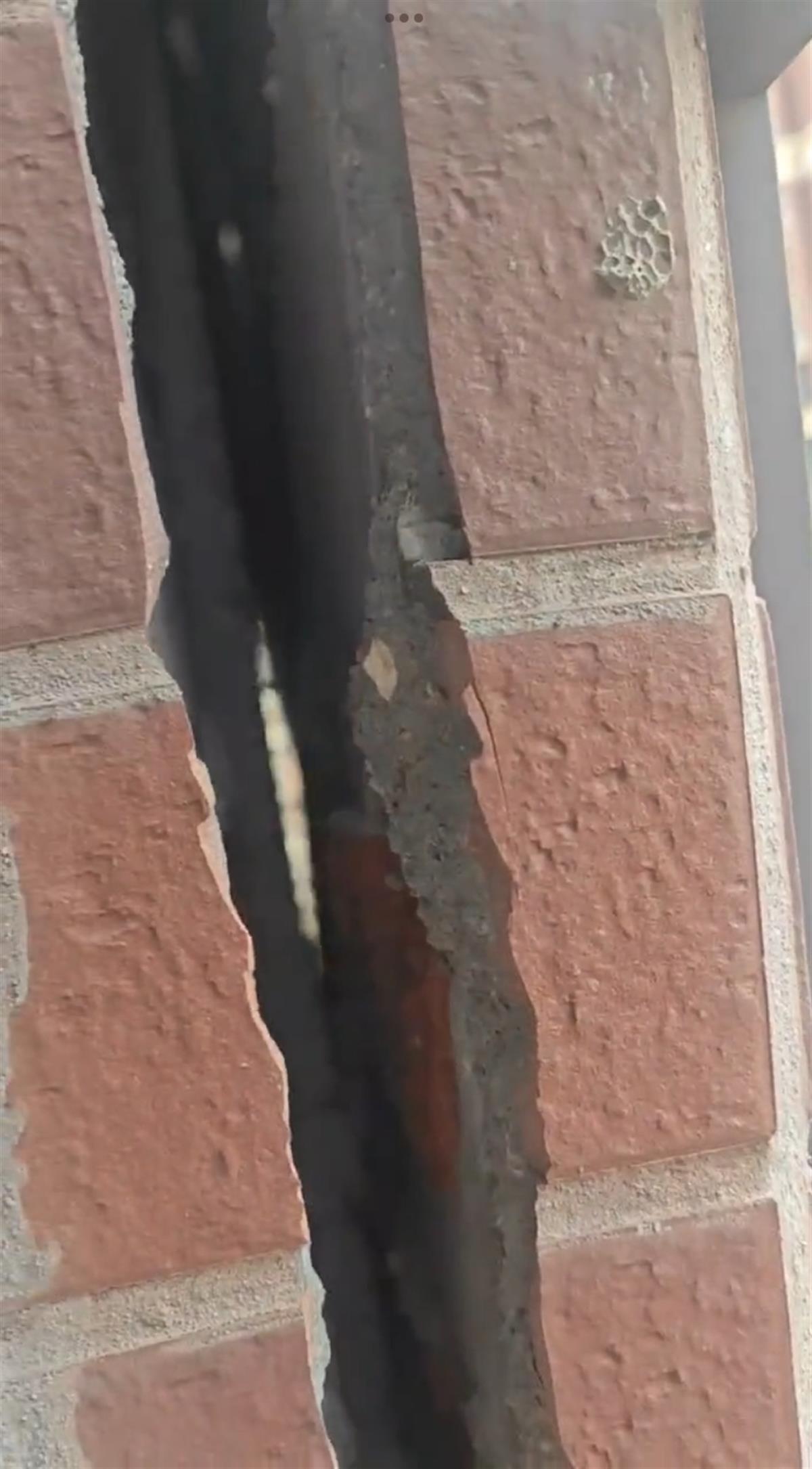 网友在发布的视频中称,在长沙市湘江新区新城国际花都小区一期,一栋居民楼二十多层处的外墙从上至下开裂,裂缝贯穿整面墙壁。