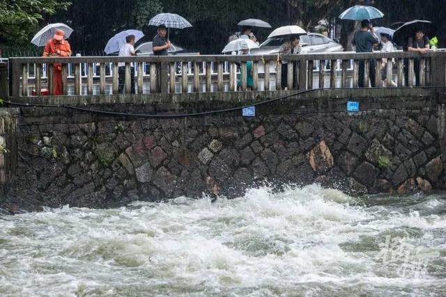 受连日强降雨影响,6月23日,西湖水位达到7.36米,超警戒水位线。为控制湖水水位,西湖九大出水口齐开,全力泄洪。