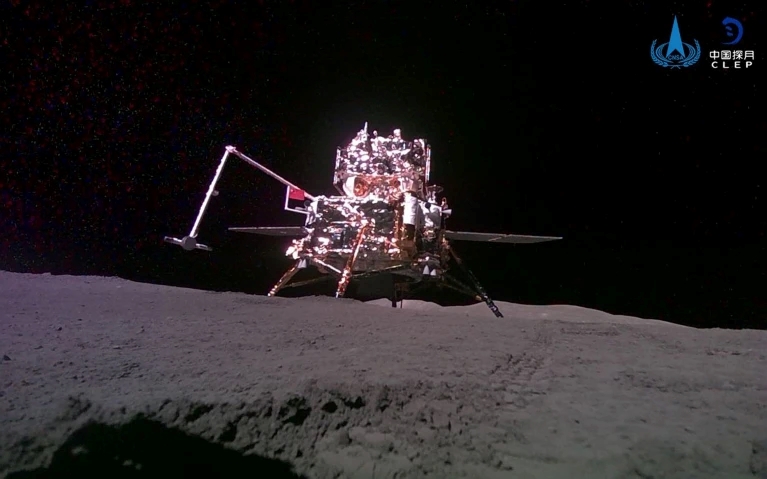 位于月球表面的嫦娥六号探测器。图片来源:新华社/《自然》网站