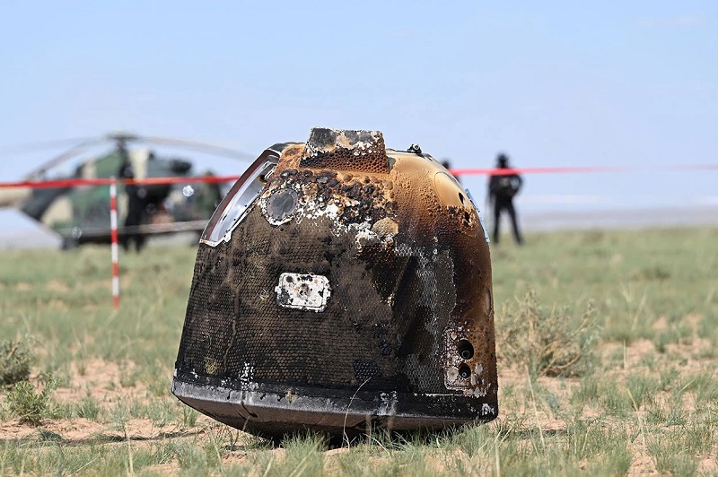 救援小组很快找到了嫦娥六号返回舱。图片来源:新华社/《自然》网站