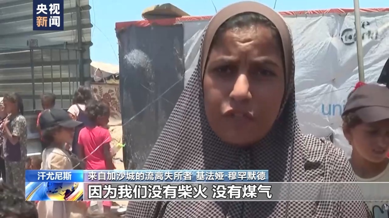 来自加沙城的流离失所者基法娅·穆罕默德:我们完全依靠慈善组织(才能吃上饭)。因为我们没有柴火、没有煤气、没有燃料,什么都没有。