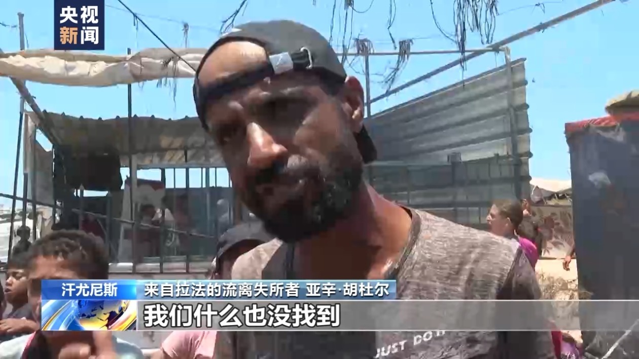 来自拉法的流离失所者亚辛·胡杜尔:我们从拉法逃难到汗尤尼斯,除了慈善组织,我们什么也没找到。我们每天都来这里吃分发的食物。