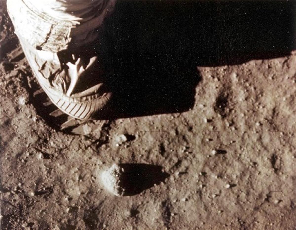 阿姆斯特朗当年在月球表面留下右脚脚印的瞬间(来源:新华社)